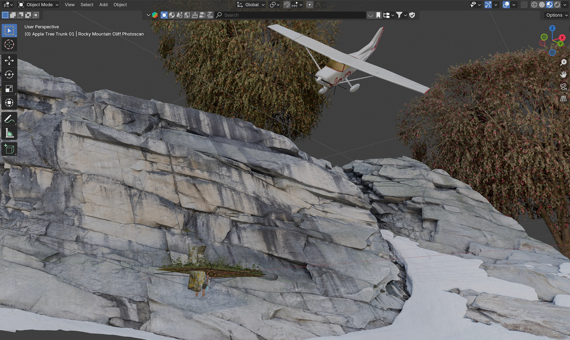 This is my first multimedia graphic design project that combines 3D compositing with alternative typology elements, fisheye distortion, and a vintage camera profile. The goal was to produce a realistic 3D scene that mimics real life and combine that with an experimental graphic magazine style. This was also my first time utilizing Gscatter to produce realistic grass.